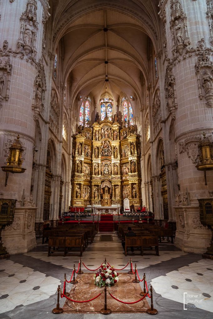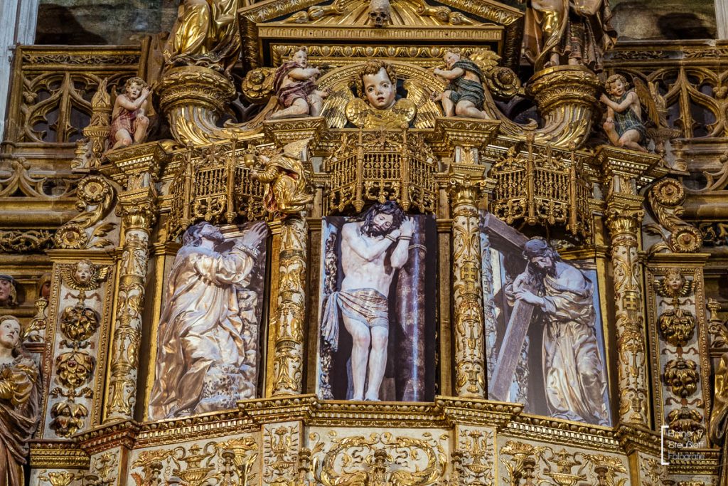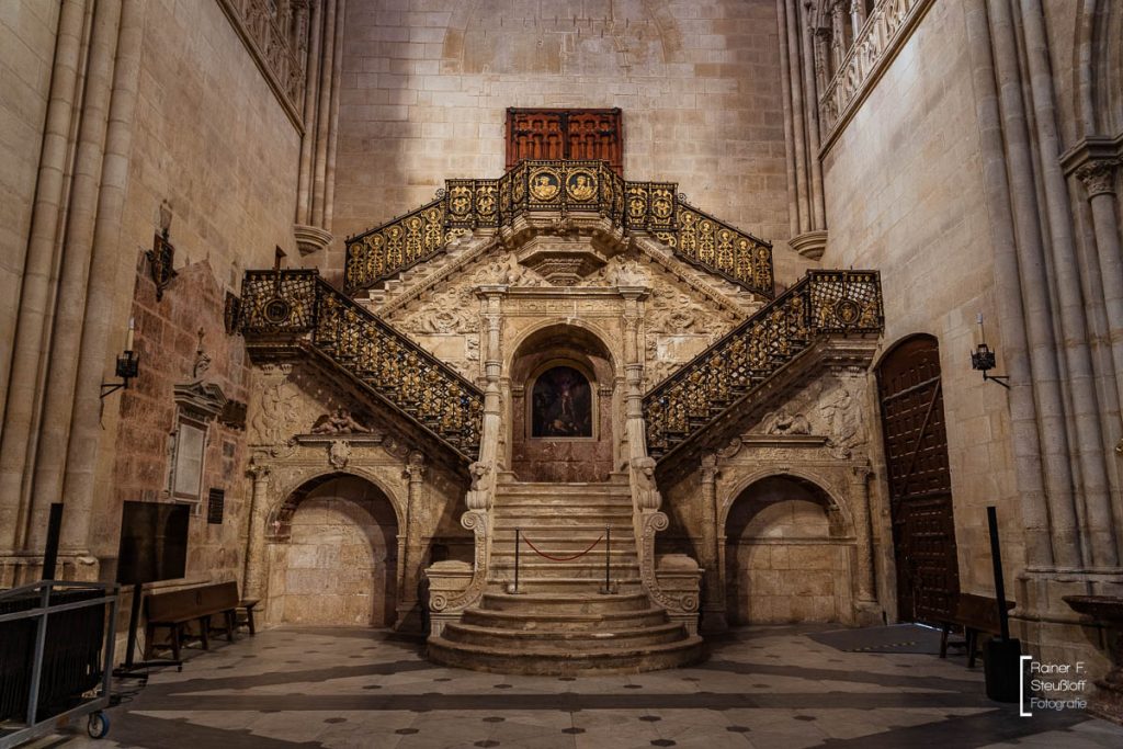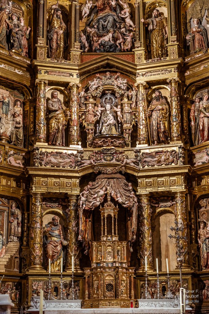 Construction began promisingly in the 12th century, but then came to a standstill for 200 years, and it took a man from the Rhineland to breathe new life into the ruined structure. Johannes of Cologne, who had also trained at the cathedral workshop on the Rhine, was brought to Burgos after a few detours. Although the people of Cologne weren’t making much progress either, he completed the work after 16 years. The cathedral bears a slight resemblance to Cologne Cathedral. To some, it also resembles a petrified forest or a clunky gingerbread-style building. It is certainly massive and impossible to miss. Over time, it has been continuously expanded and remodeled. The interior is magnificent and richly filled with art treasures. With 19 chapels, 38 altars, and 60 columns, the interior truly reflects the vastness of its actual dimensions.