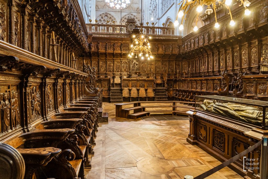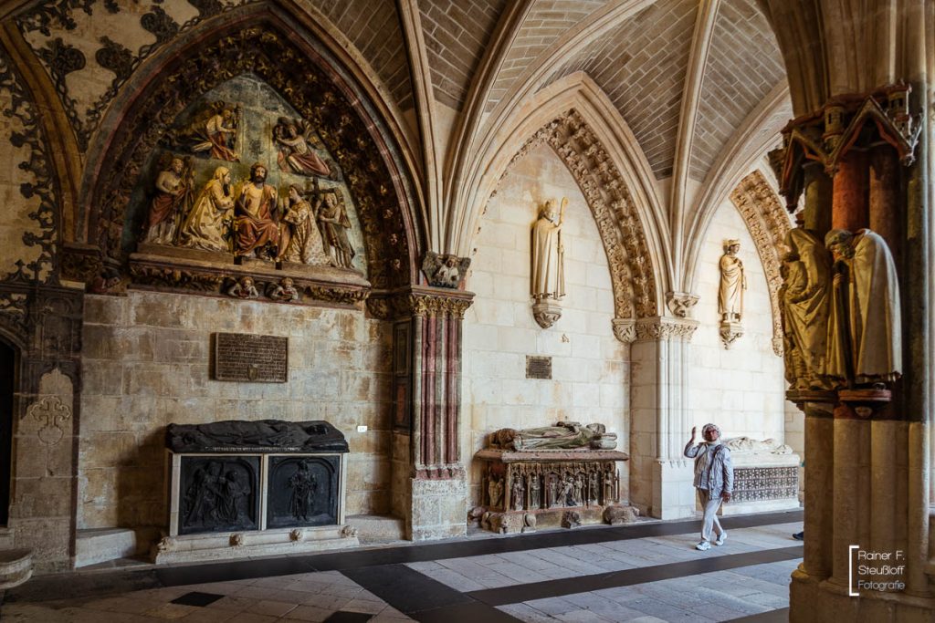 Dafür wurden der Warlord und Natonalheld El Cid – Rodrigo Díaz de Vivar und seine Frau Doña Jimena vom Kloster San Pedro de Cardeña bei Burgos in die Kathedrale umgebettet. Manche Massenmörder verklärt die Geschichte gerne.